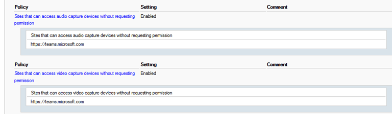 This ensures that Teams can automatically use your microphone and camera without prompting users for permission.